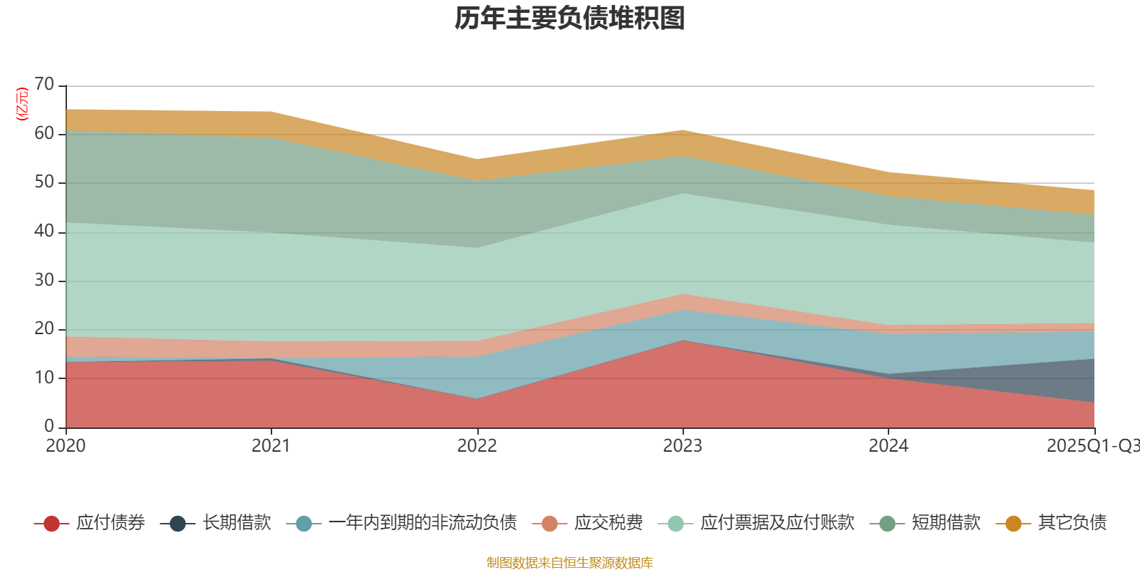 负债重大变化方面,截至2025年三季度末,公司长期借款较上年末增加841.52%,占公司总资产比重上升15.04个百分点;应付债券较上年末减少48.98%,占公司总资产比重下降7.08个百分点;应付票据及应付账款较上年末减少19.86%,占公司总资产比重下降3.37个百分点;一年内到期的非流动负债较上年末减少32.51%,占公司总资产比重下降3.26个百分点。