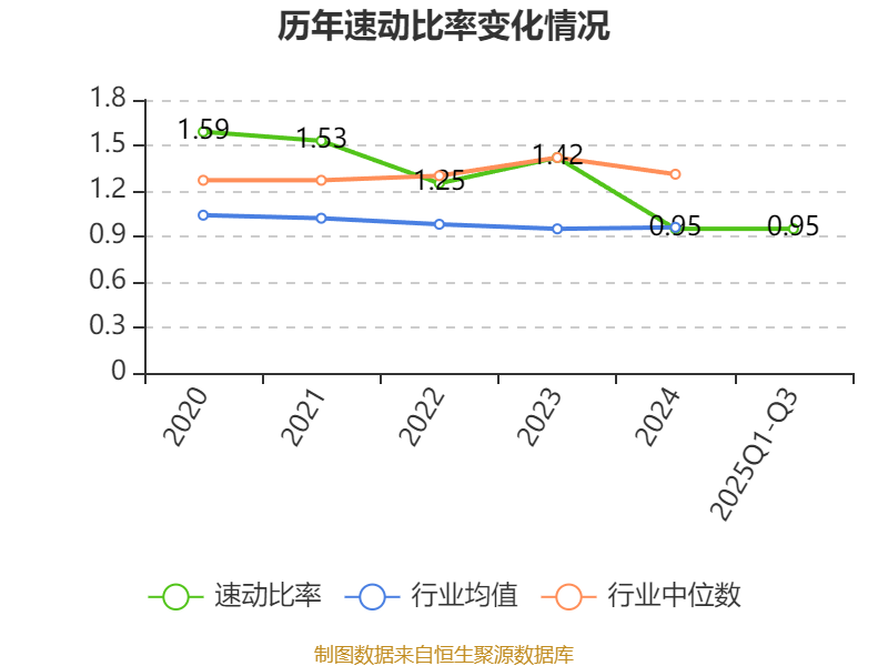 2025年前三季度,公司流动比率为0.96,速动比率为0.95。