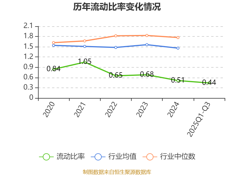 2025年前三季度,公司流动比率为0.44,速动比率为0.3。