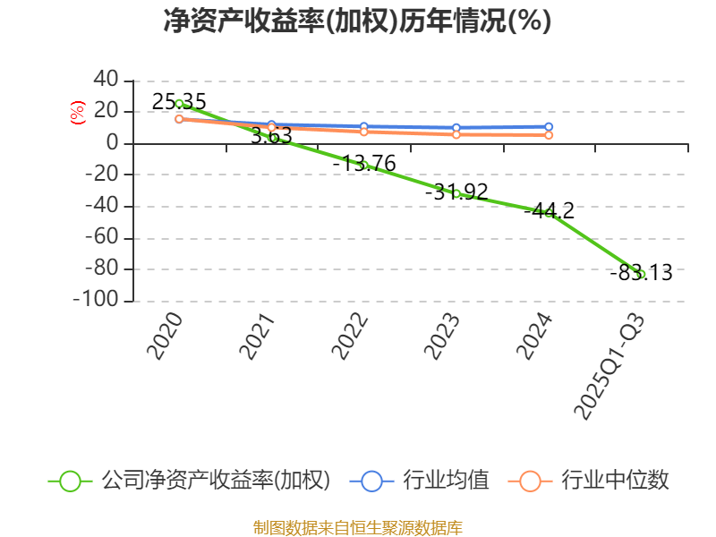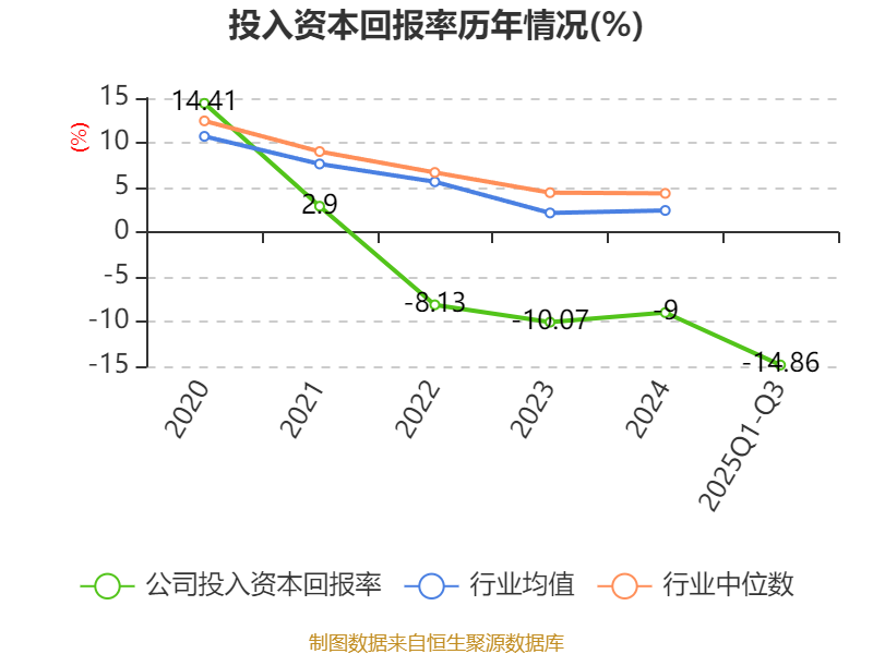 盈利能力方面, 2025年前三季度公司加权平均净资产收益率为-83.13%,同比下降56.69个百分点。公司2025年前三季度投入资本回报率为-14.86%,较上年同期下降9.81个百分点。