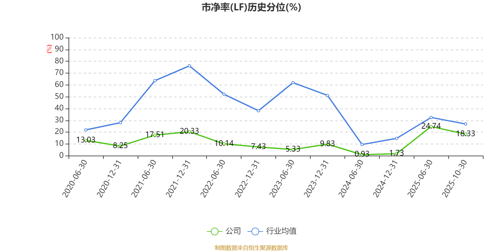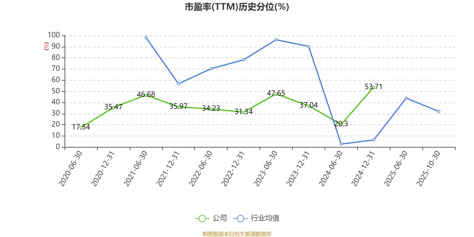 市盈率、市净率为负时,不显示当期分位数,会导致折线图中断。