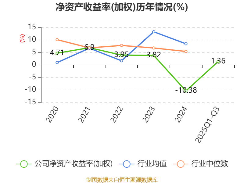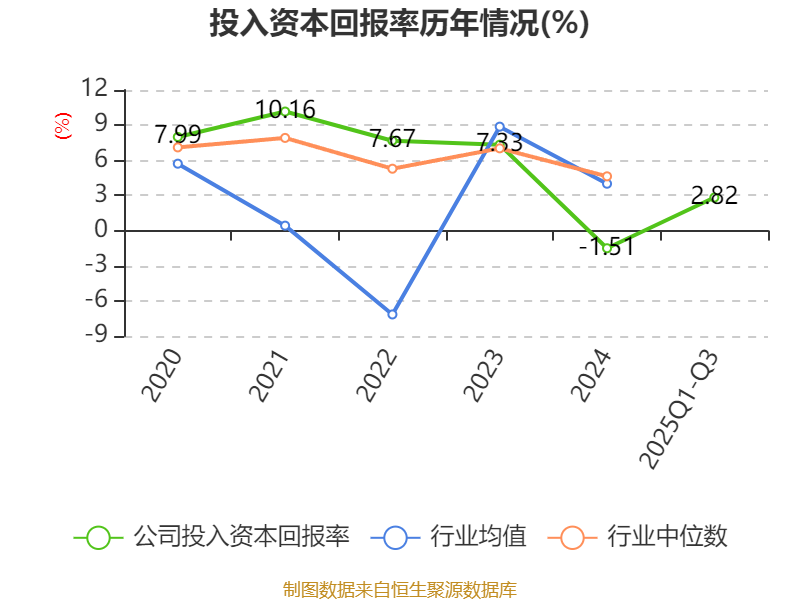 盈利能力方面, 2025年前三季度公司加权平均净资产收益率为1.36%,同比下降1.72个百分点。公司2025年前三季度投入资本回报率为2.82%,较上年同期下降2.17个百分点。