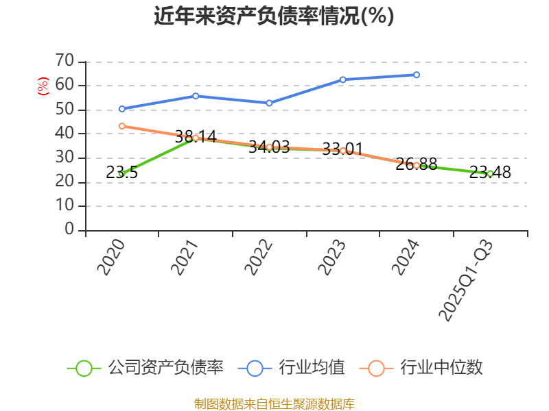 2025年前三季度,公司流动比率为3.39,速动比率为2.57。
