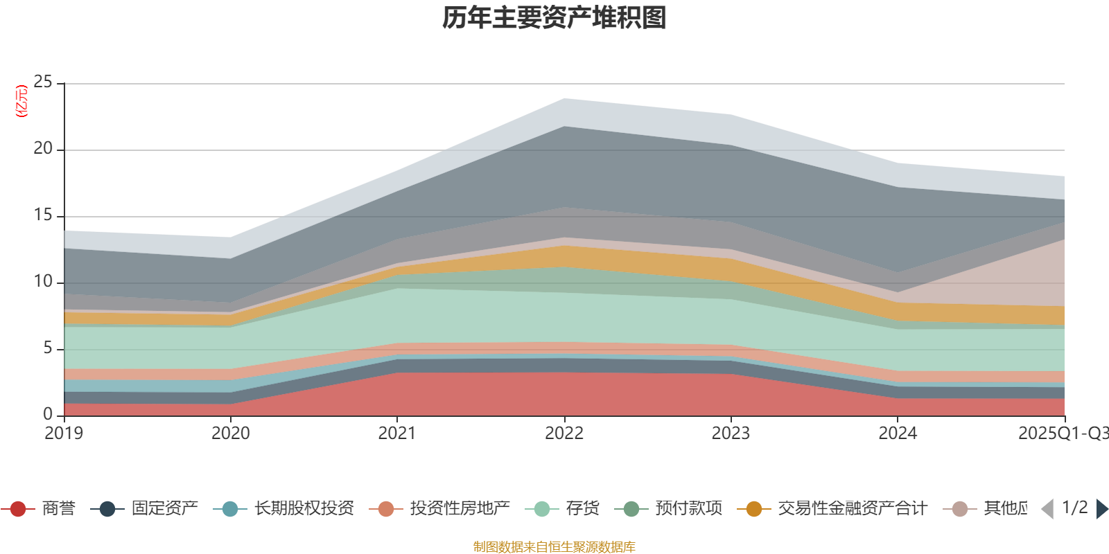 资产重大变化方面,截至2025年三季度末,公司货币资金较上年末减少73.69%,占公司总资产比重下降24.38个百分点;其他应收款(含利息和股利)较上年末增加558.49%,占公司总资产比重上升23.96个百分点;预付款项较上年末减少54.81%,占公司总资产比重下降1.81个百分点;存货较上年末增加2.06%,占公司总资产比重上升1.26个百分点。