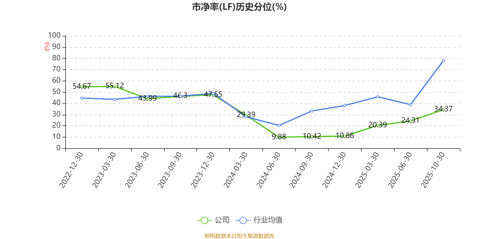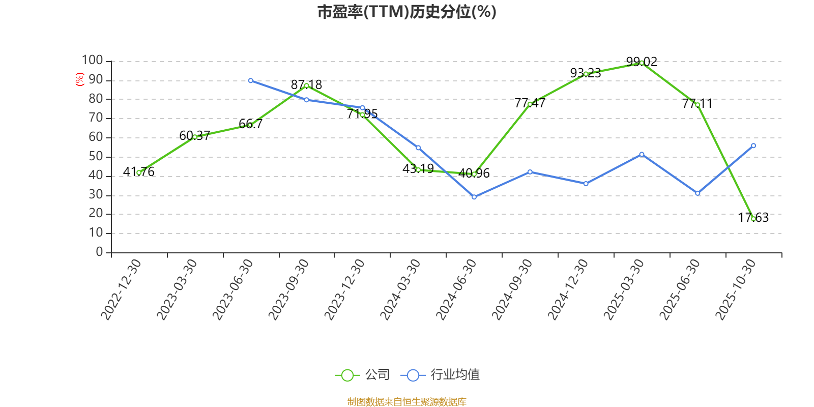 市盈率、市净率为负时,不显示当期分位数,会导致折线图中断。