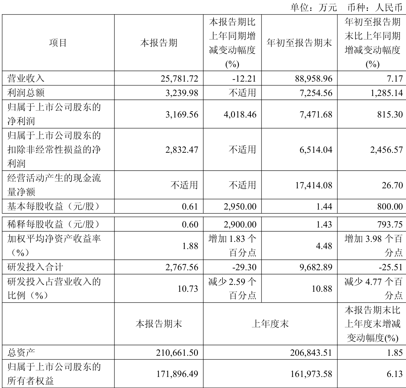 负债重大变化方面,截至2025年三季度末,公司应付票据及应付账款较上年末减少35.24%,占公司总资产比重下降4.33个百分点;合同负债较上年末增加48.15%,占公司总资产比重上升0.76个百分点;其他流动负债较上年末增加16.98%,占公司总资产比重上升0.42个百分点;长期递延收益较上年末增加10.78%,占公司总资产比重上升0.26个百分点。