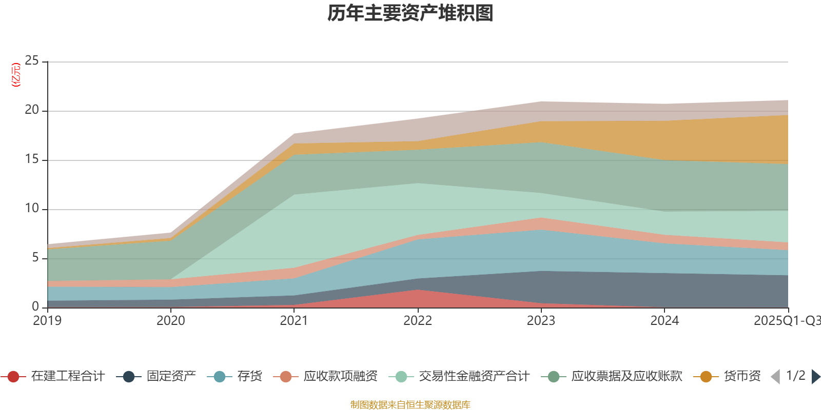 资产重大变化方面,截至2025年三季度末,公司货币资金较上年末增加25.1%,占公司总资产比重上升4.41个百分点;交易性金融资产合计较上年末增加35.34%,占公司总资产比重上升3.75个百分点;应收票据及应收账款较上年末减少9.25%,占公司总资产比重下降2.76个百分点;存货较上年末减少15.57%,占公司总资产比重下降2.5个百分点。