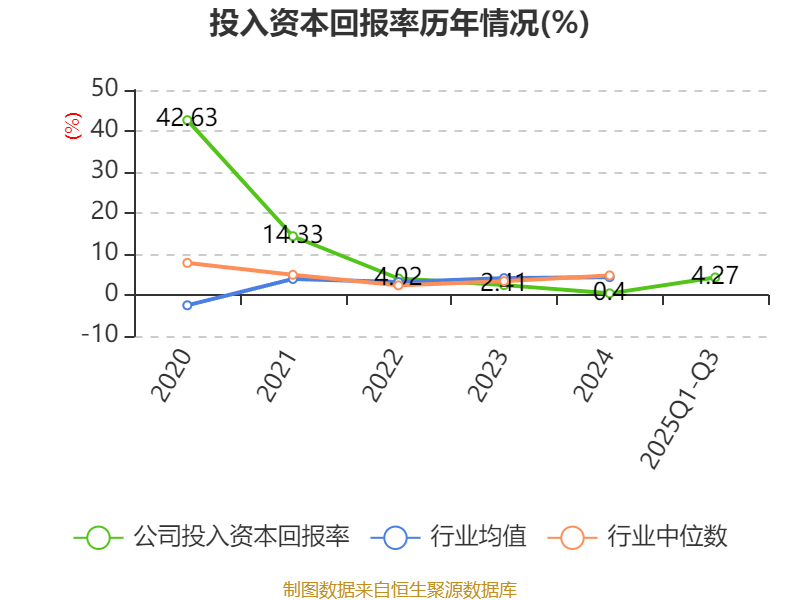 盈利能力方面, 2025年前三季度公司加权平均净资产收益率为4.48%,同比上升3.97个百分点。公司2025年前三季度投入资本回报率为4.27%,较上年同期上升4.06个百分点。