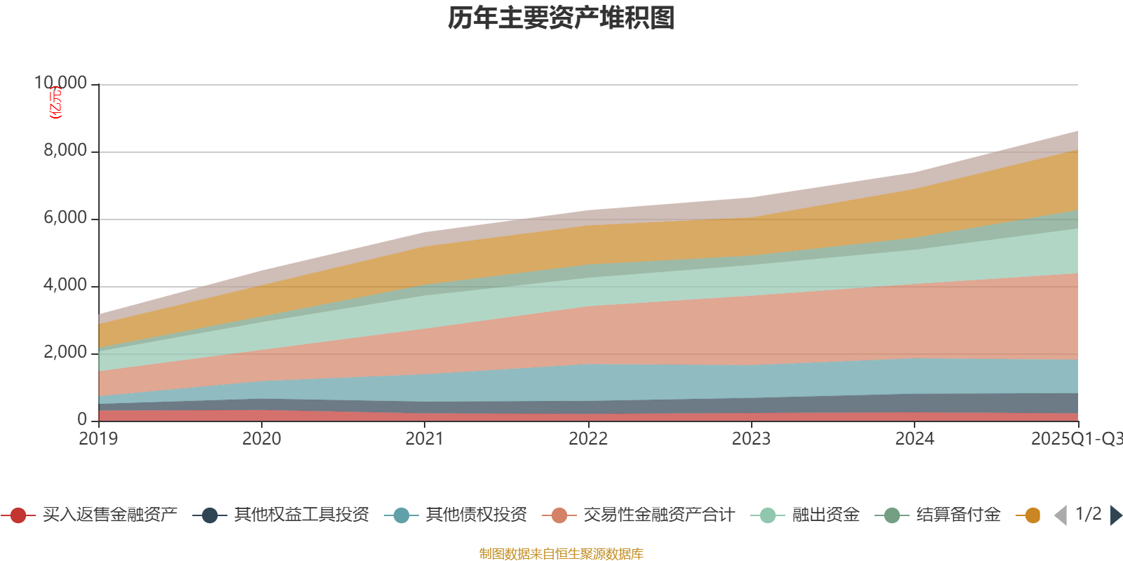 资产重大变化方面,截至2025年三季度末,公司其他债权投资较上年末减少5.14%,占公司总资产比重下降2.67个百分点;融出资金较上年末增加30.51%,占公司总资产比重上升1.62个百分点;结算备付金较上年末增加55.15%,占公司总资产比重上升1.6个百分点;货币资金较上年末增加23.85%,占公司总资产比重上升1.19个百分点。