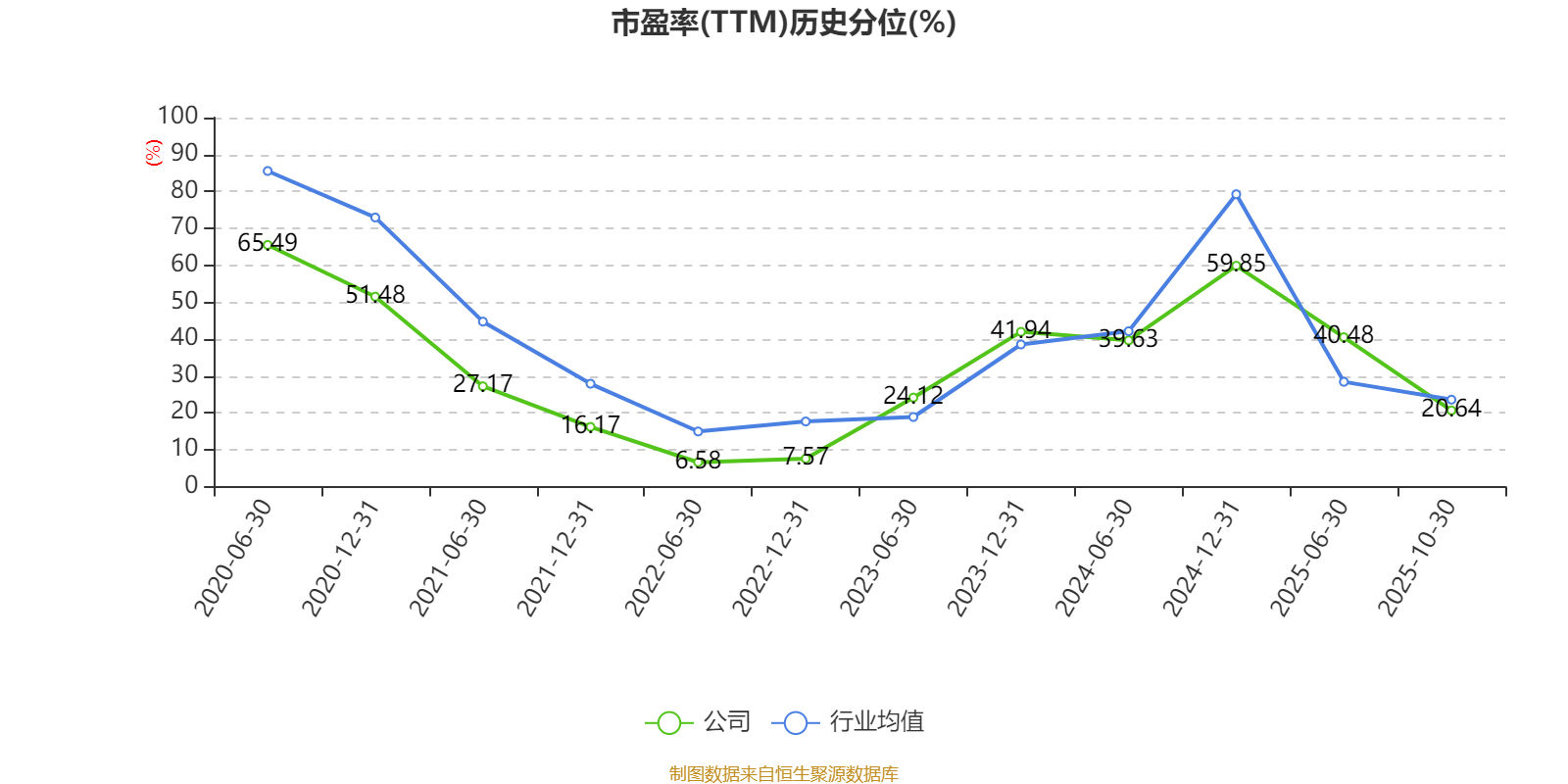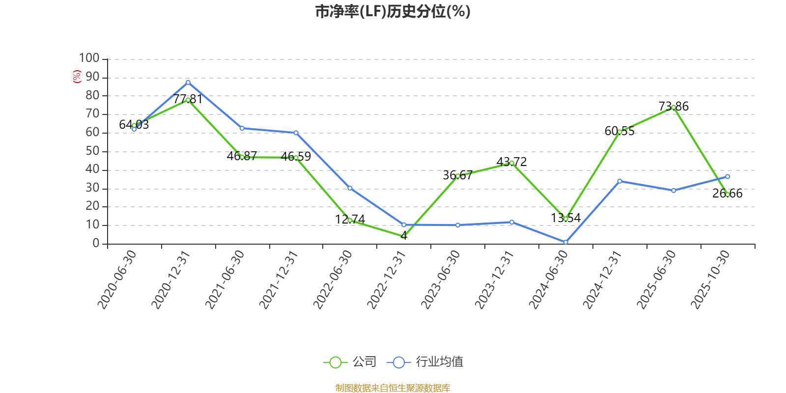 市盈率、市净率为负时,不显示当期分位数,会导致折线图中断。