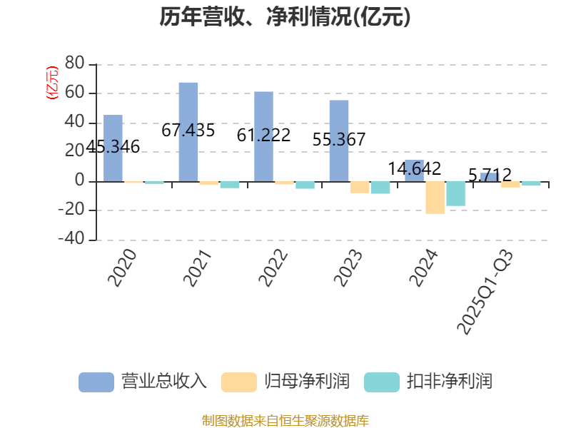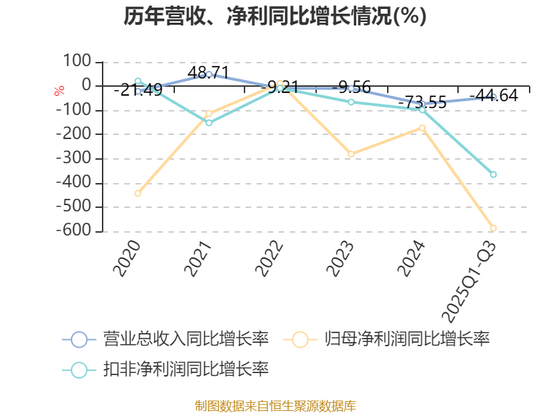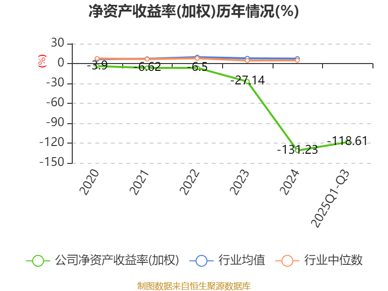 盈利能力方面, 2025年前三季度公司加权平均净资产收益率为-118.61%,同比下降120.8个百分点。公司2025年前三季度投入资本回报率为-16.73%,较上年同期下降16.16个百分点。