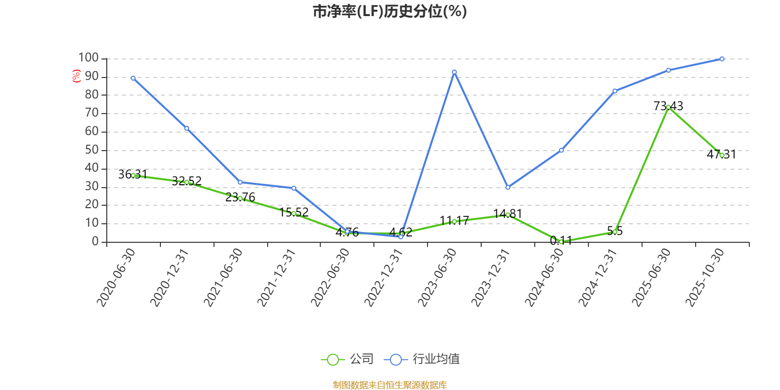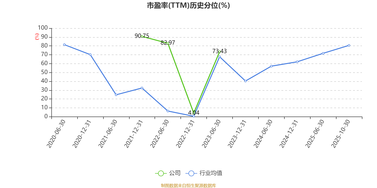 市盈率、市净率为负时,不显示当期分位数,会导致折线图中断。