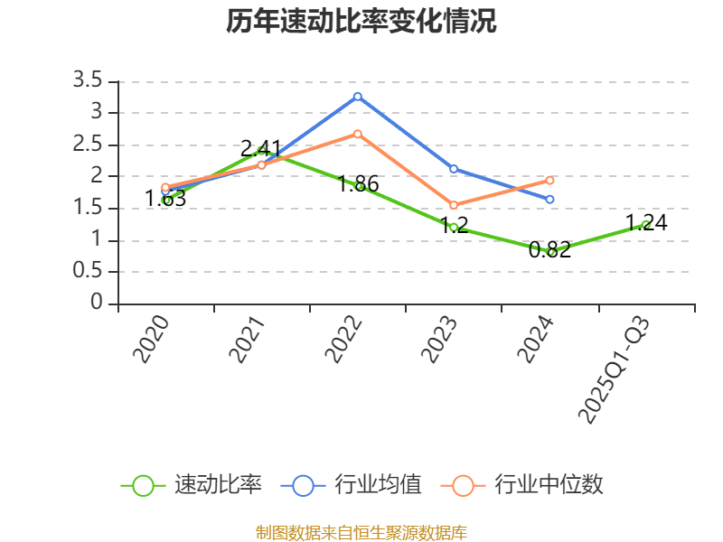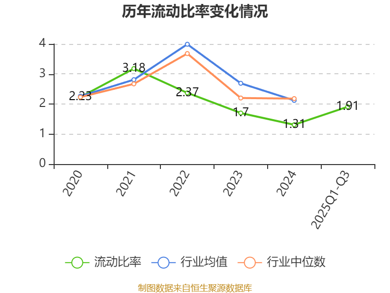 2025年前三季度,公司流动比率为1.91,速动比率为1.24。