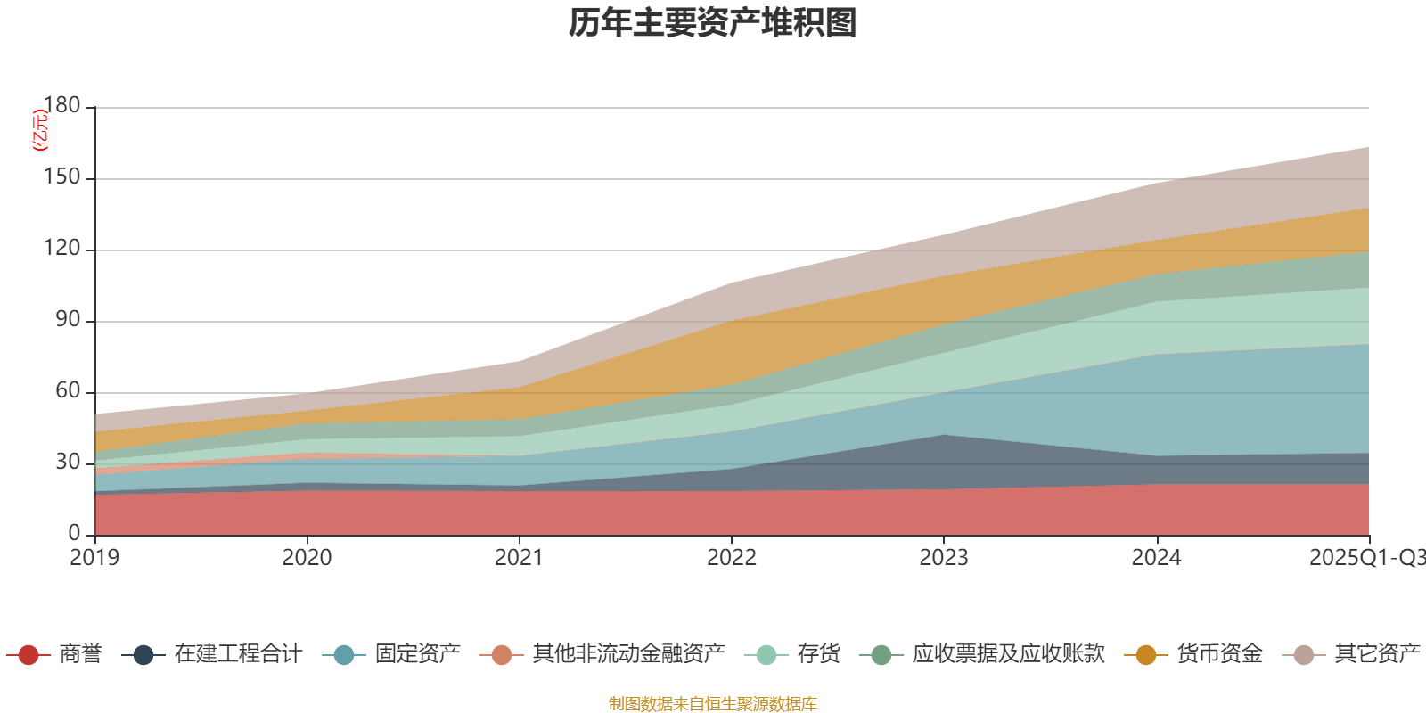 资产重大变化方面,截至2025年三季度末,公司货币资金较上年末增加29.03%,占公司总资产比重上升1.64个百分点;其他流动资产较上年末减少27.03%,占公司总资产比重下降1.43个百分点;应收票据及应收账款较上年末增加30.01%,占公司总资产比重上升1.41个百分点;商誉较上年末增加0.02%,占公司总资产比重下降1.33个百分点。