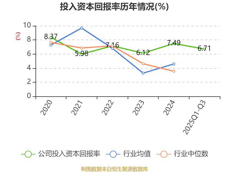 盈利能力方面, 2025年前三季度公司加权平均净资产收益率为10.6%,同比上升2.18个百分点。公司2025年前三季度投入资本回报率为6.71%,较上年同期持平。