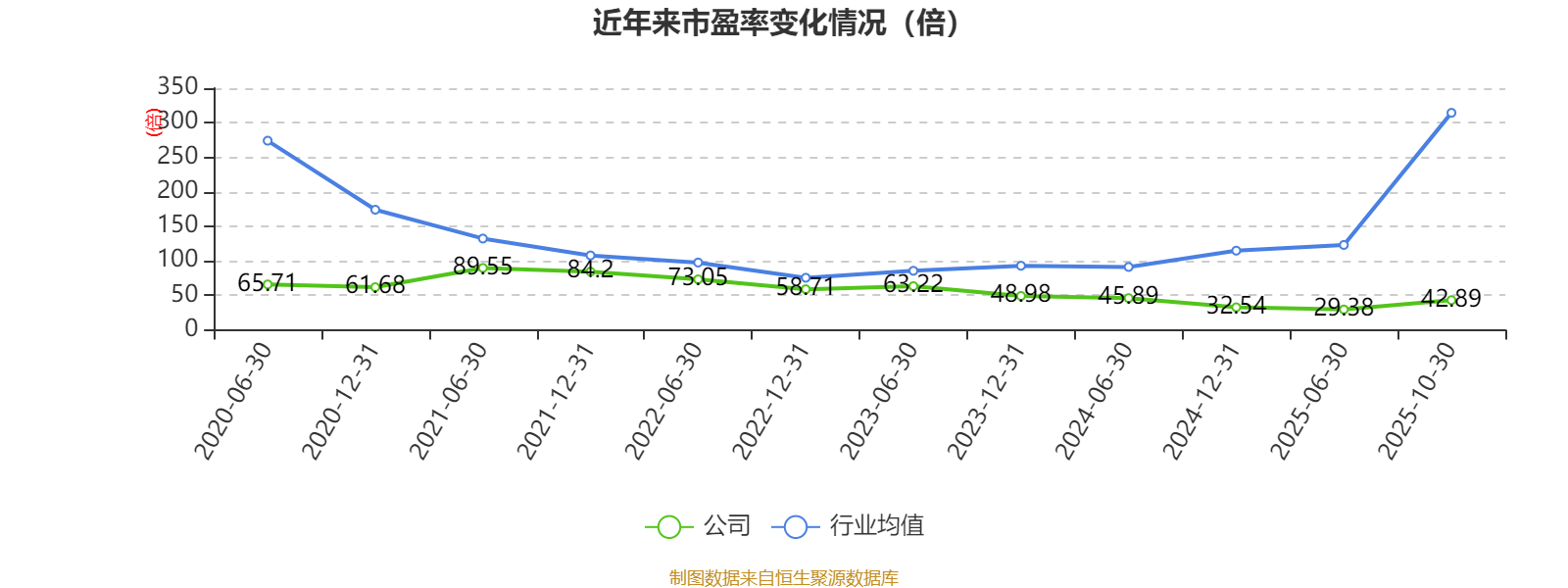 以10月30日收盘价计算,雅克科技目前市盈率(TTM)约为42.89倍,市净率(LF)约5.05倍,市销率(TTM)约4.73倍。