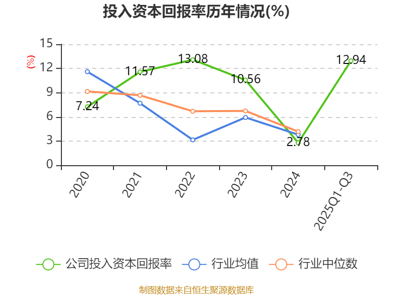盈利能力方面, 2025年前三季度公司加权平均净资产收益率为12.18%,同比上升17.44个百分点。公司2025年前三季度投入资本回报率为12.94%,较上年同期上升22.3个百分点。