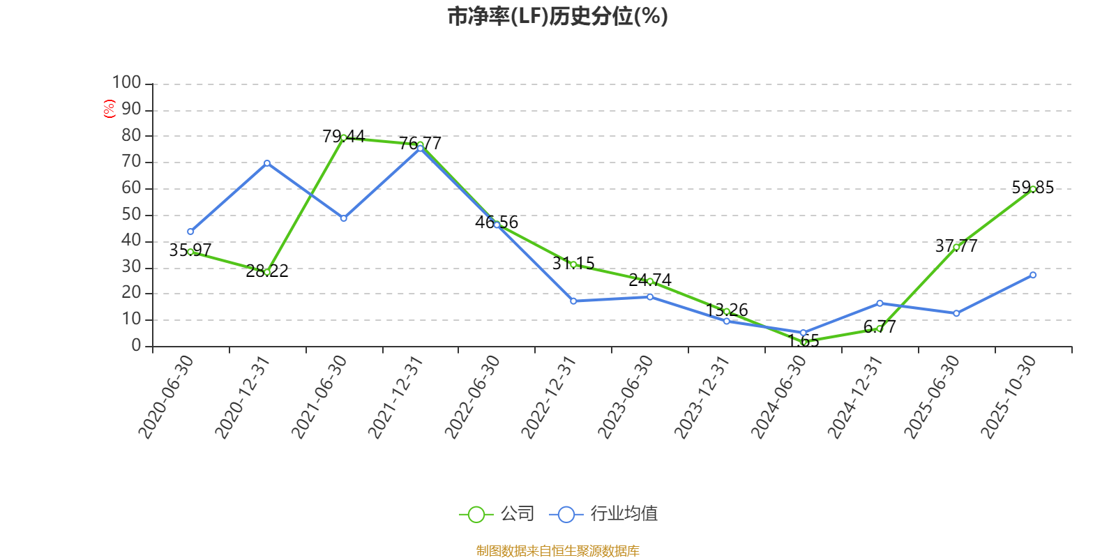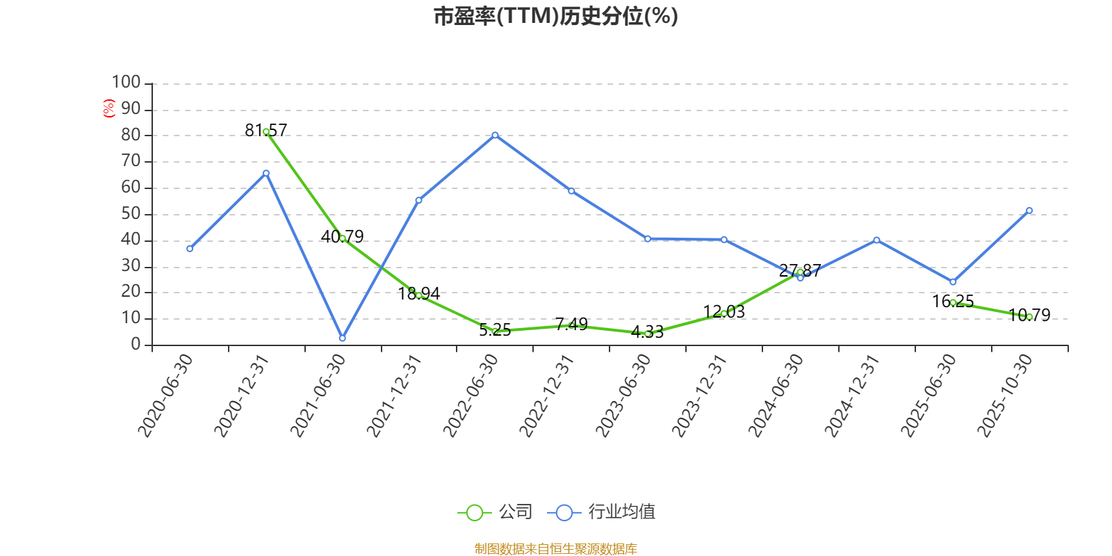 市盈率、市净率为负时,不显示当期分位数,会导致折线图中断。