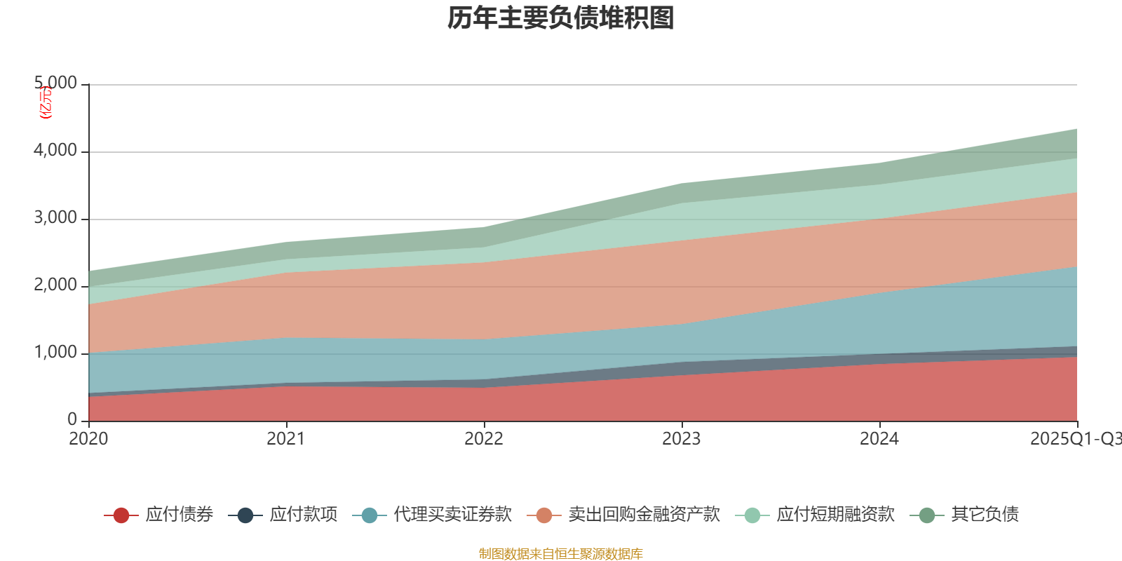 负债重大变化方面,截至2025年三季度末,公司代理买卖证券款较上年末增加30.52%,占公司总资产比重上升3.01个百分点;卖出回购金融资产款较上年末增加0.15%,占公司总资产比重下降2.3个百分点;应付短期融资款较上年末减少0.75%,占公司总资产比重下降1.15个百分点;拆入资金较上年末增加131.4%,占公司总资产比重上升0.66个百分点。