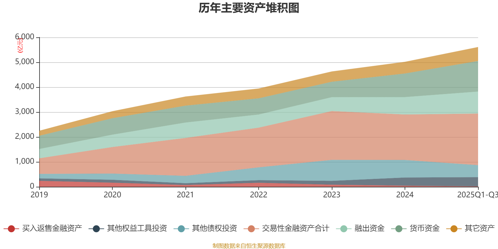 资产重大变化方面,截至2025年三季度末,公司其他债权投资较上年末减少31.25%,占公司总资产比重下降5.41个百分点;货币资金较上年末增加29.44%,占公司总资产比重上升2.96个百分点;融出资金较上年末增加26.1%,占公司总资产比重上升1.78个百分点;买入返售金融资产较上年末减少66.53%,占公司总资产比重下降0.58个百分点。