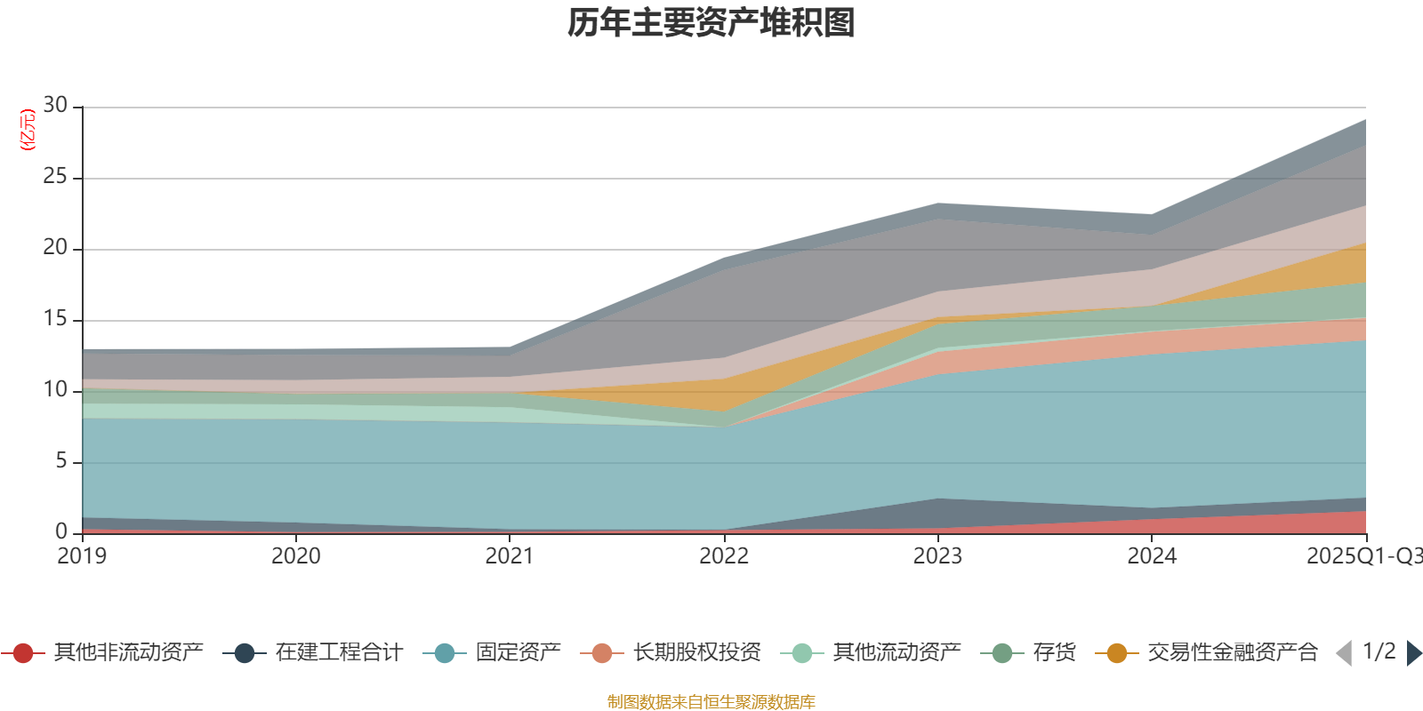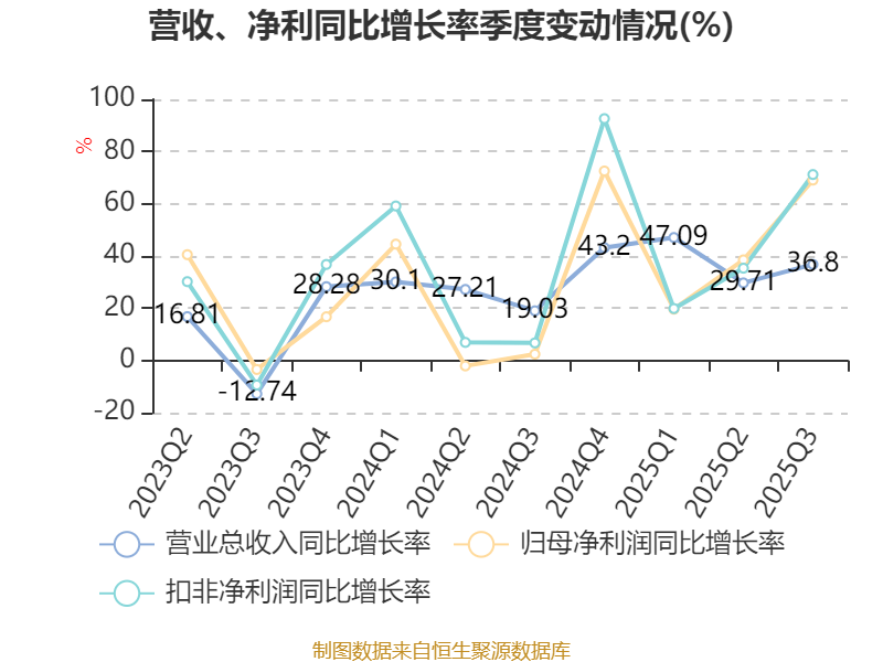 资产重大变化方面,截至2025年三季度末,公司固定资产较上年末增加2.39%,占公司总资产比重下降10.18个百分点;交易性金融资产合计占公司总资产的9.64%,上年末为0;货币资金较上年末增加75.37%,占公司总资产比重上升3.8个百分点;一年内到期的非流动资产占公司总资产的3.36%,上年末为0。