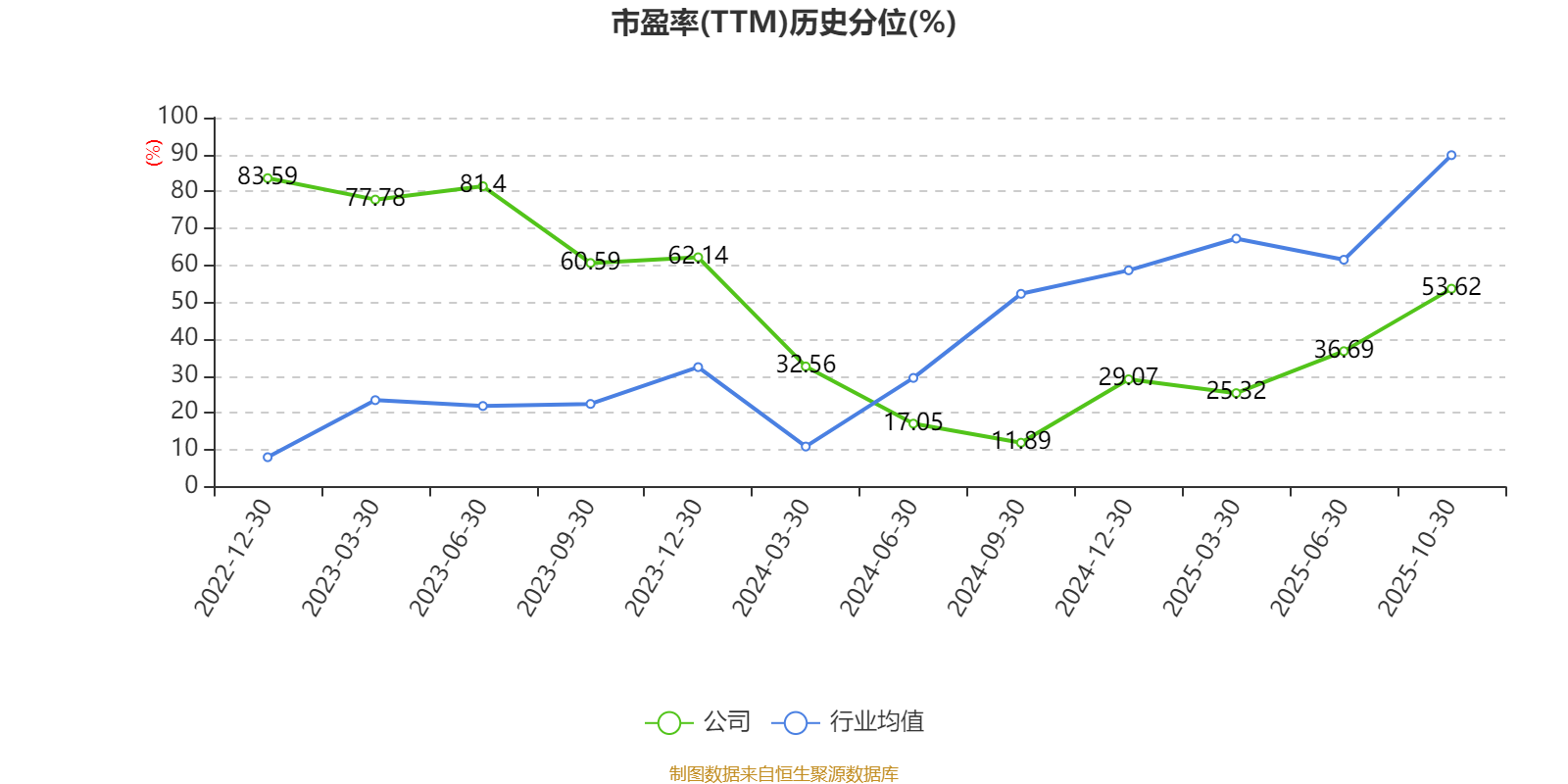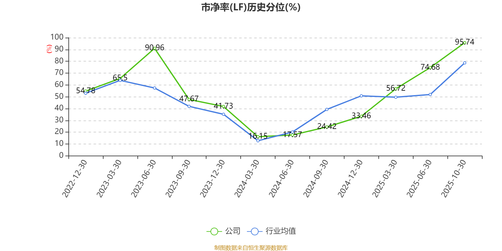 市盈率、市净率为负时,不显示当期分位数,会导致折线图中断。