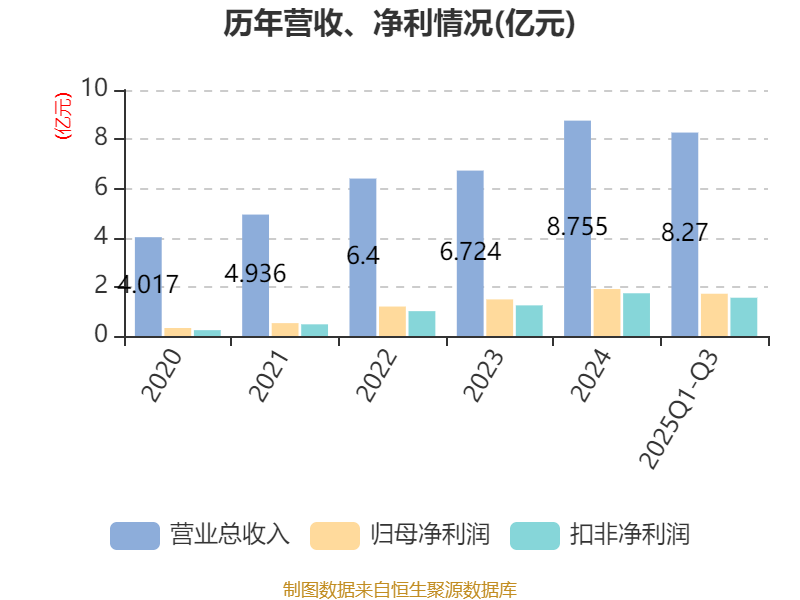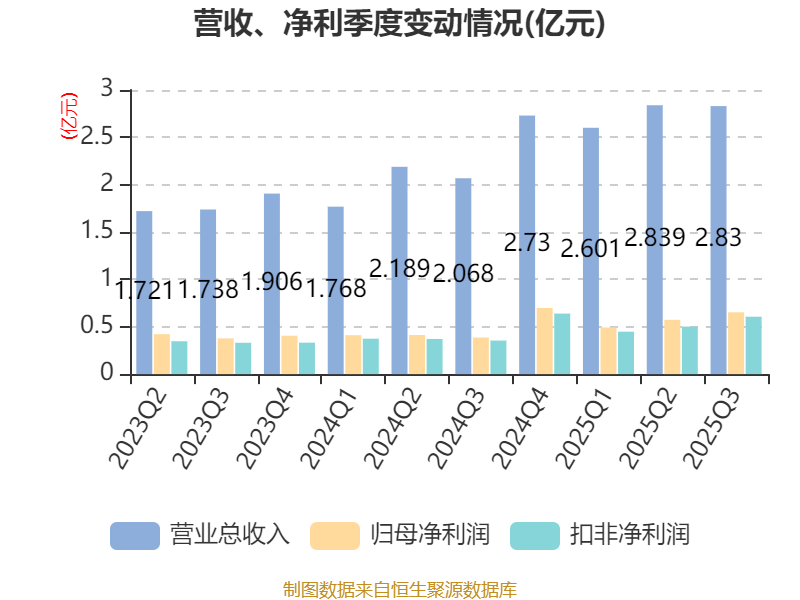2025年前三季度,公司经营活动现金流净额为2.6亿元,同比增长36.61%;筹资活动现金流净额4.51亿元,同比增加5.84亿元;投资活动现金流净额-5.29亿元,上年同期为-8570.76万元。