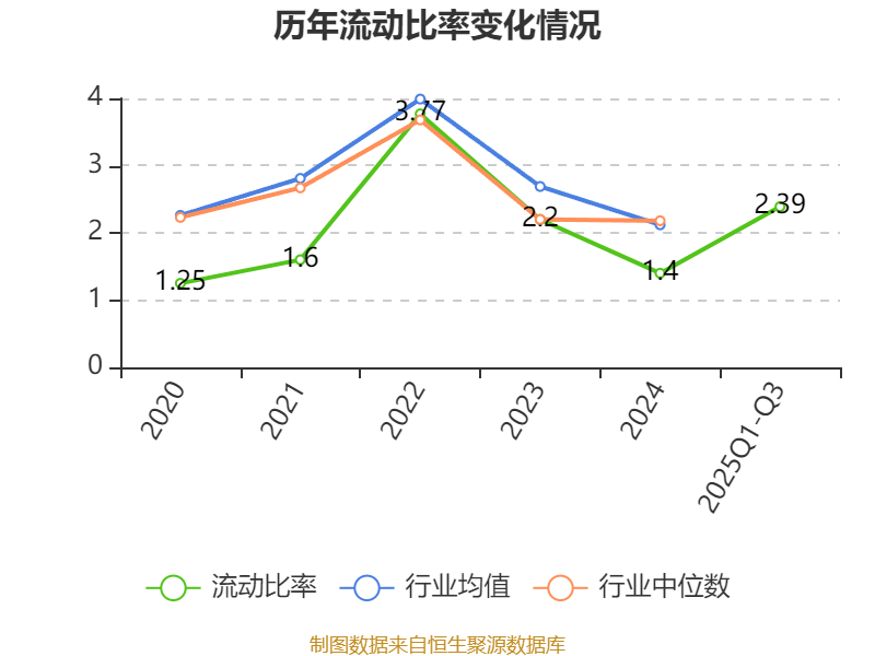 2025年前三季度,公司流动比率为2.39,速动比率为1.95。