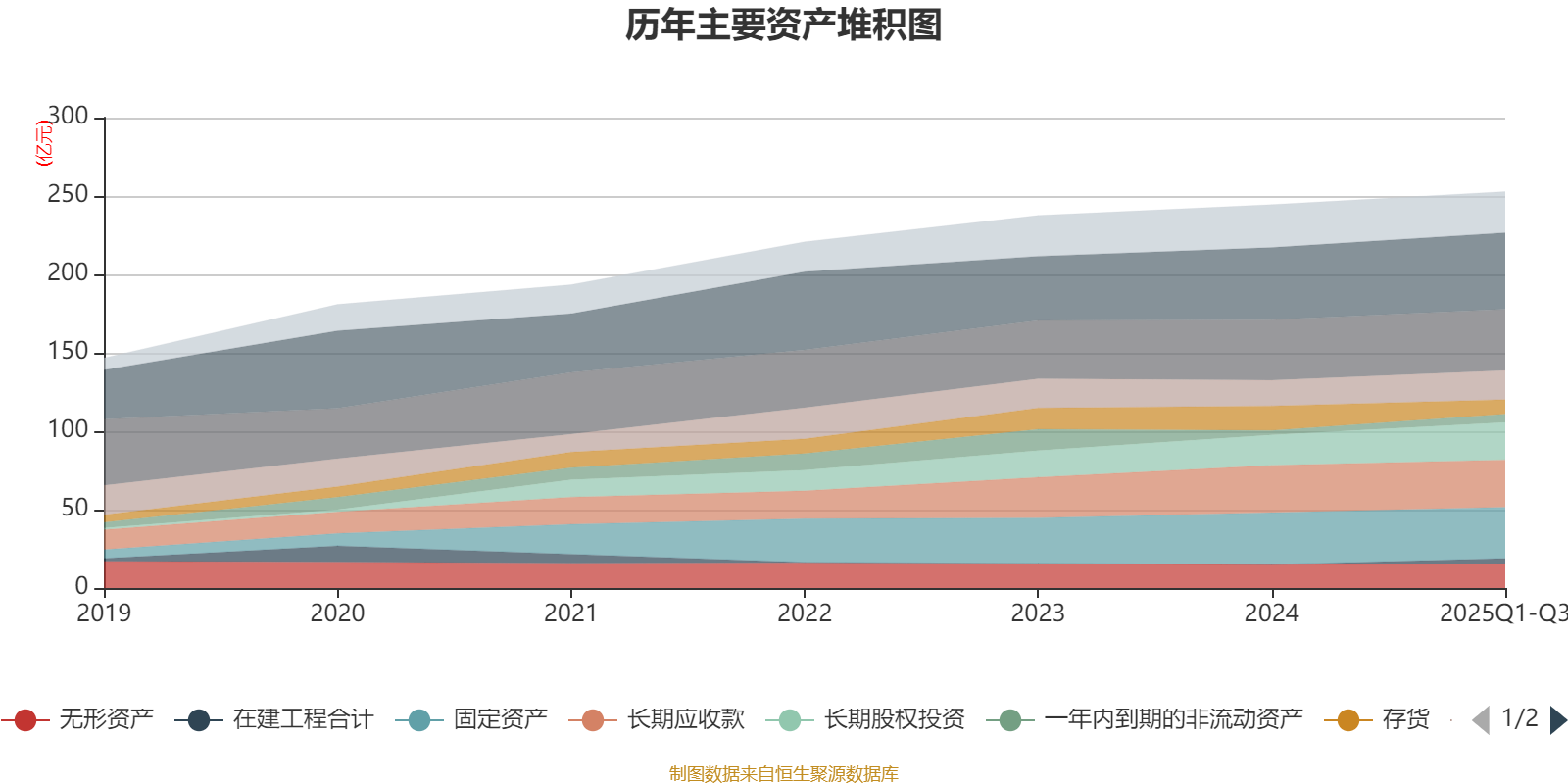 资产重大变化方面,截至2025年三季度末,公司存货较上年末减少40.99%,占公司总资产比重下降2.75个百分点;长期股权投资较上年末增加22.55%,占公司总资产比重上升1.48个百分点;在建工程合计较上年末增加2595.61%,占公司总资产比重上升1.31个百分点;债权投资较上年末减少73.87%,占公司总资产比重下降1.07个百分点。