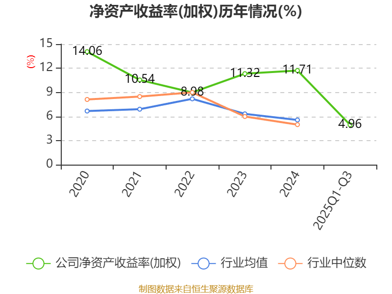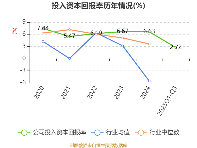 盈利能力方面, 2025年前三季度公司加权平均净资产收益率为4.96%,同比下降3.63个百分点。公司2025年前三季度投入资本回报率为2.72%,较上年同期下降2.76个百分点。