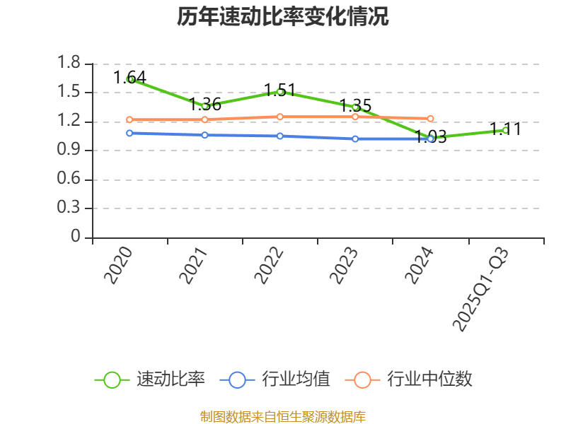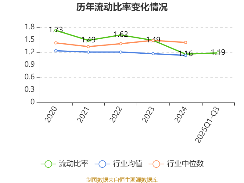 2025年前三季度,公司流动比率为1.19,速动比率为1.11。