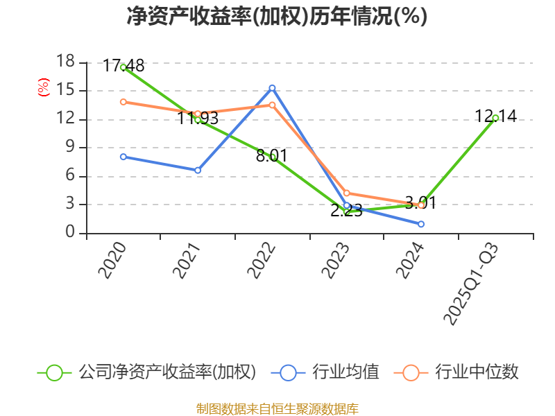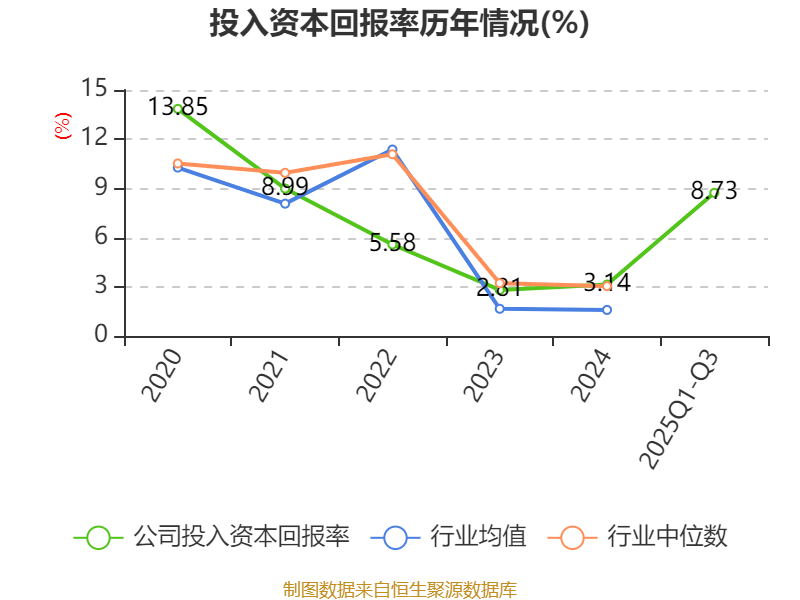 盈利能力方面, 2025年前三季度公司加权平均净资产收益率为12.14%,同比上升10.26个百分点。公司2025年前三季度投入资本回报率为8.73%,较上年同期上升6.73个百分点。