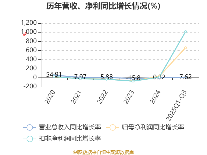 中证智能财讯利民股份(002734)10月31日披露2025年第三季度报告。前三季度公司实现营业总收入35.99亿元,同比增长7.62%;归母净利润3.9亿元,同比增长661.66%;扣非净利润3.77亿元,同比增长1014.94%;经营活动产生的现金流量净额为1.91亿元,上年同期为-9842.81万元;报告期内,利民股份基本每股收益为0.96元,加权平均净资产收益率为12.14%。