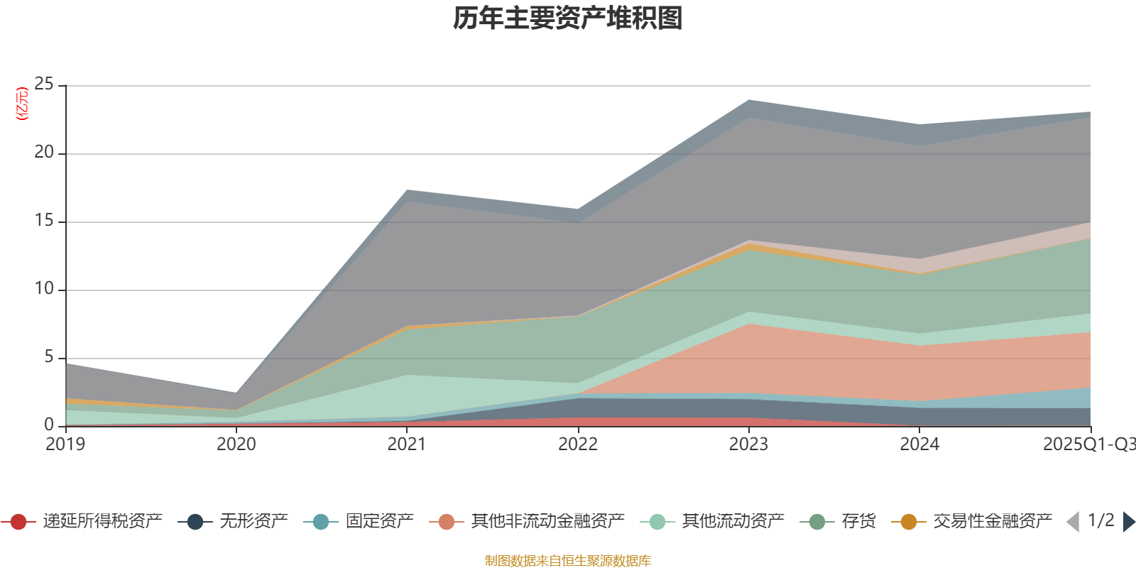 资产重大变化方面,截至2025年三季度末,公司存货较上年末增加27.93%,占公司总资产比重上升4.43个百分点;固定资产较上年末增加212.48%,占公司总资产比重上升4.37个百分点;货币资金较上年末减少7.21%,占公司总资产比重下降4.12个百分点;在建工程合计较上年末减少100%,占公司总资产比重下降3.54个百分点。