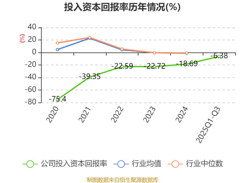 盈利能力方面, 2025年前三季度公司加权平均净资产收益率为-6.93%,同比上升7.59个百分点。公司2025年前三季度投入资本回报率为-6.38%,较上年同期上升7.91个百分点。