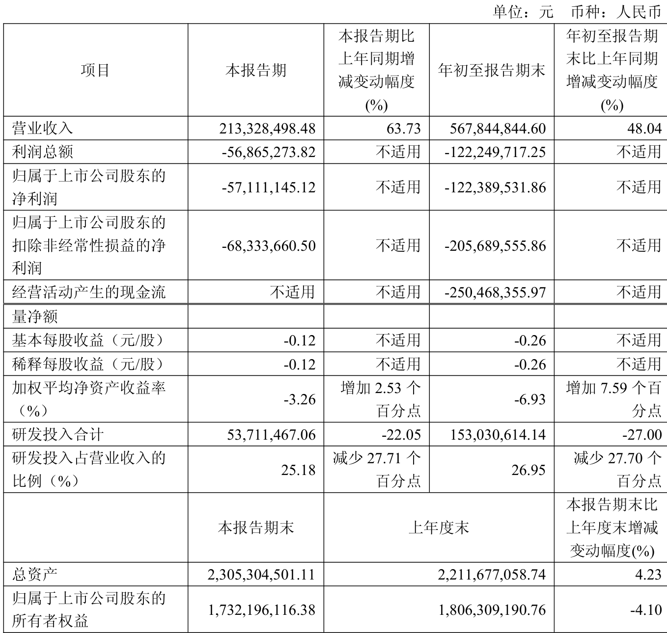 中证智能财讯慧智微(688512)10月31日披露2025年第三季度报告。前三季度公司实现营业总收入5.68亿元,同比增长48.04%;归母净利润亏损1.22亿元,上年同期亏损2.98亿元;扣非净利润亏损2.06亿元,上年同期亏损3.21亿元;经营活动产生的现金流量净额为-2.5亿元,上年同期为-2.75亿元;报告期内,慧智微基本每股收益为-0.26元,加权平均净资产收益率为-6.93%。