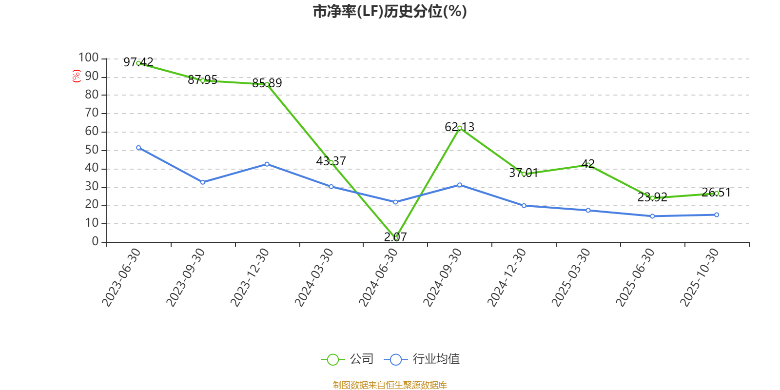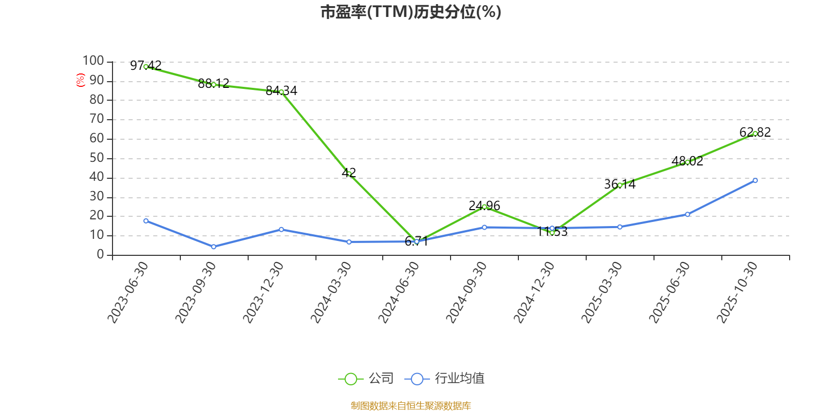 市盈率、市净率为负时,不显示当期分位数,会导致折线图中断。