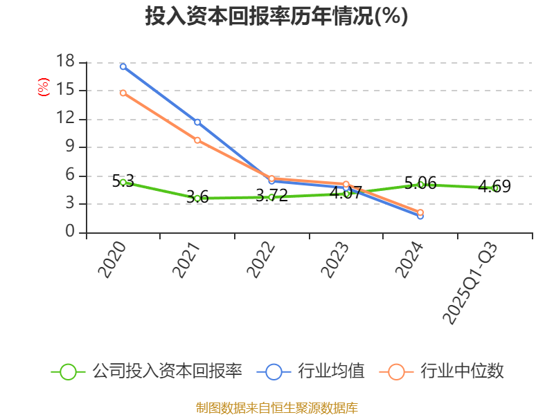 盈利能力方面, 2025年前三季度公司加权平均净资产收益率为6.37%,同比上升1.23个百分点。公司2025年前三季度投入资本回报率为4.69%,较上年同期上升0.94个百分点。
