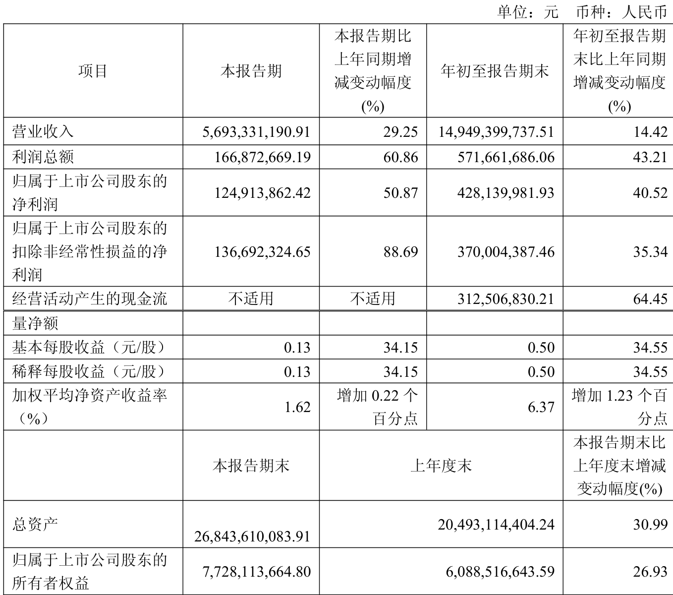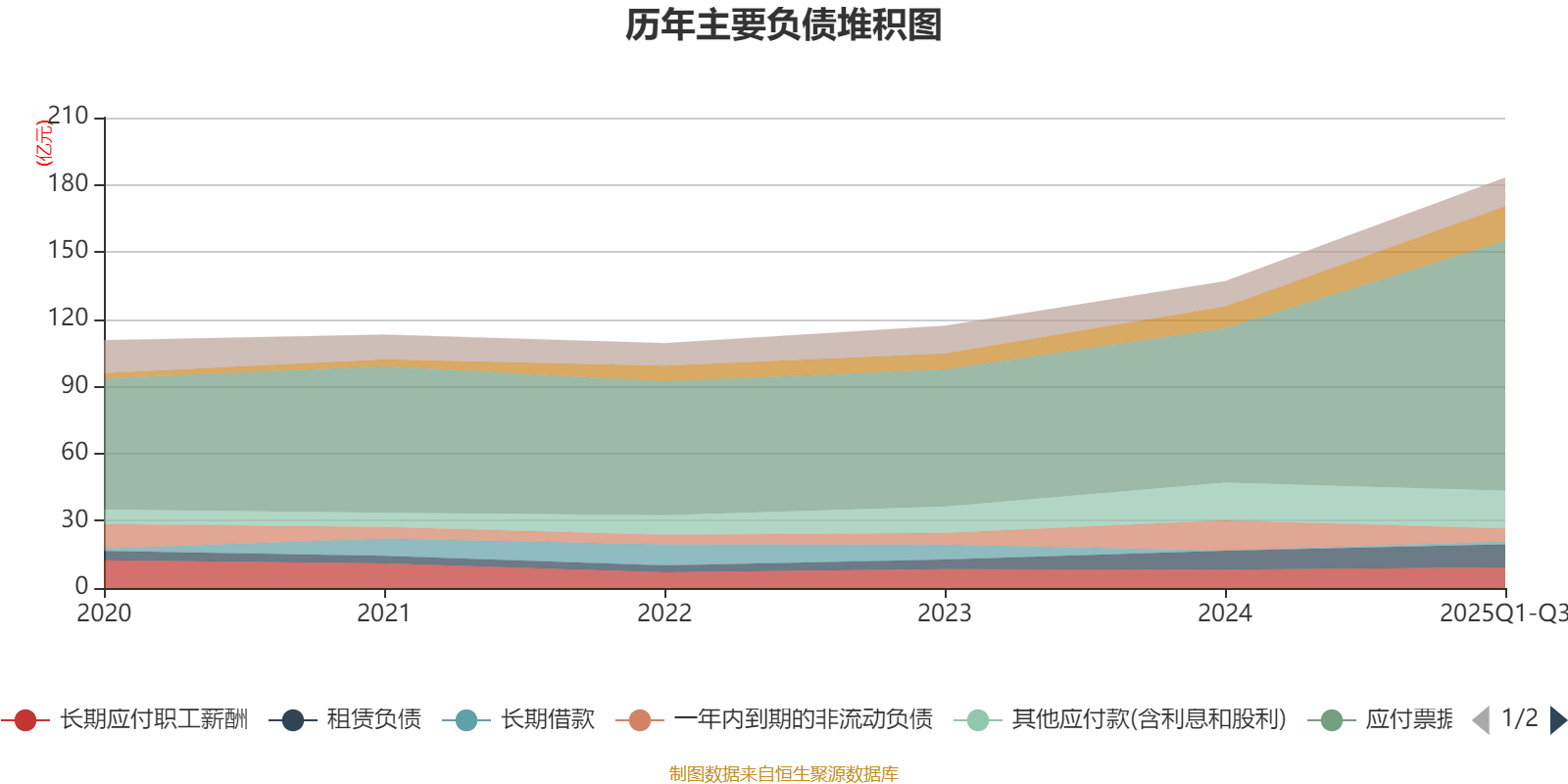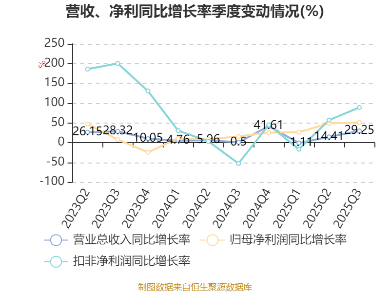 负债重大变化方面,截至2025年三季度末,公司应付票据及应付账款较上年末增加61.8%,占公司总资产比重上升7.91个百分点;一年内到期的非流动负债较上年末减少56.64%,占公司总资产比重下降4.36个百分点;其他应付款(含利息和股利)较上年末减少0.3%,占公司总资产比重下降1.97个百分点;短期借款较上年末增加59.56%,占公司总资产比重上升1.03个百分点。