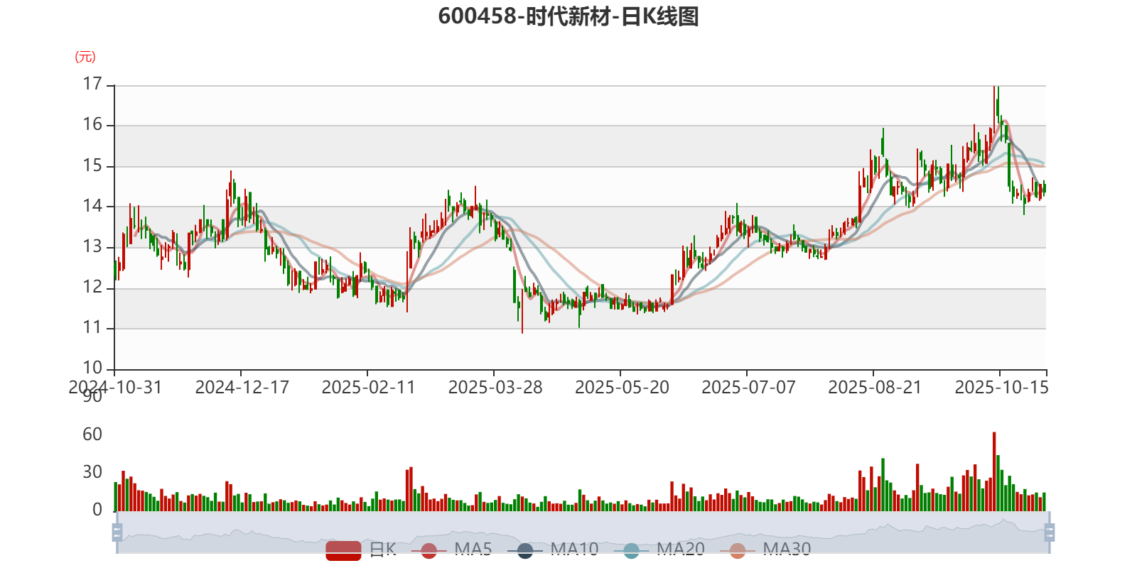 以10月30日收盘价计算,时代新材目前市盈率(TTM)约为23.54倍,市净率(LF)约1.73倍,市销率(TTM)约0.61倍。