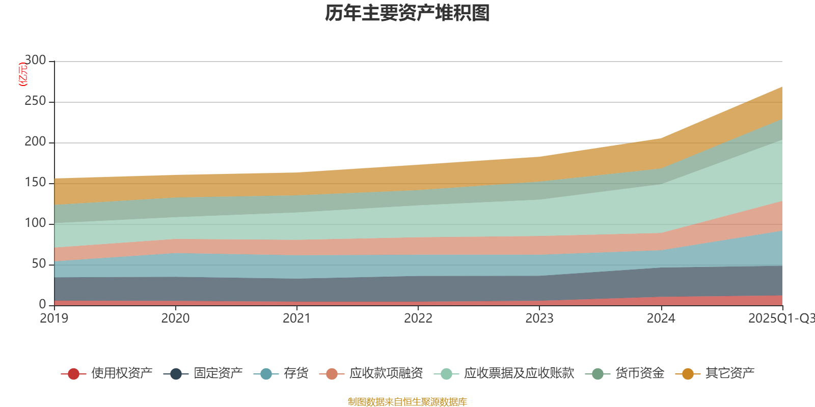 资产重大变化方面,截至2025年三季度末,公司存货较上年末增加101.57%,占公司总资产比重上升5.61个百分点;固定资产较上年末增加1.7%,占公司总资产比重下降3.91个百分点;应收款项融资较上年末增加72.49%,占公司总资产比重上升3.28个百分点;应收票据及应收账款较上年末增加25.4%,占公司总资产比重下降1.25个百分点。
