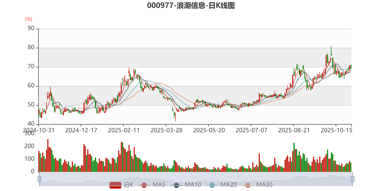 以10月30日收盘价计算,浪潮信息目前市盈率(TTM)约为41.03倍,市净率(LF)约4.85倍,市销率(TTM)约0.67倍。
