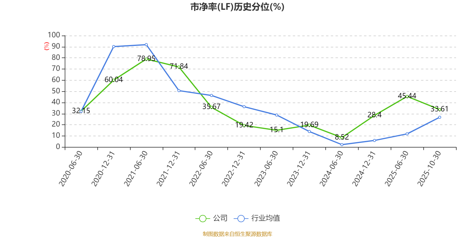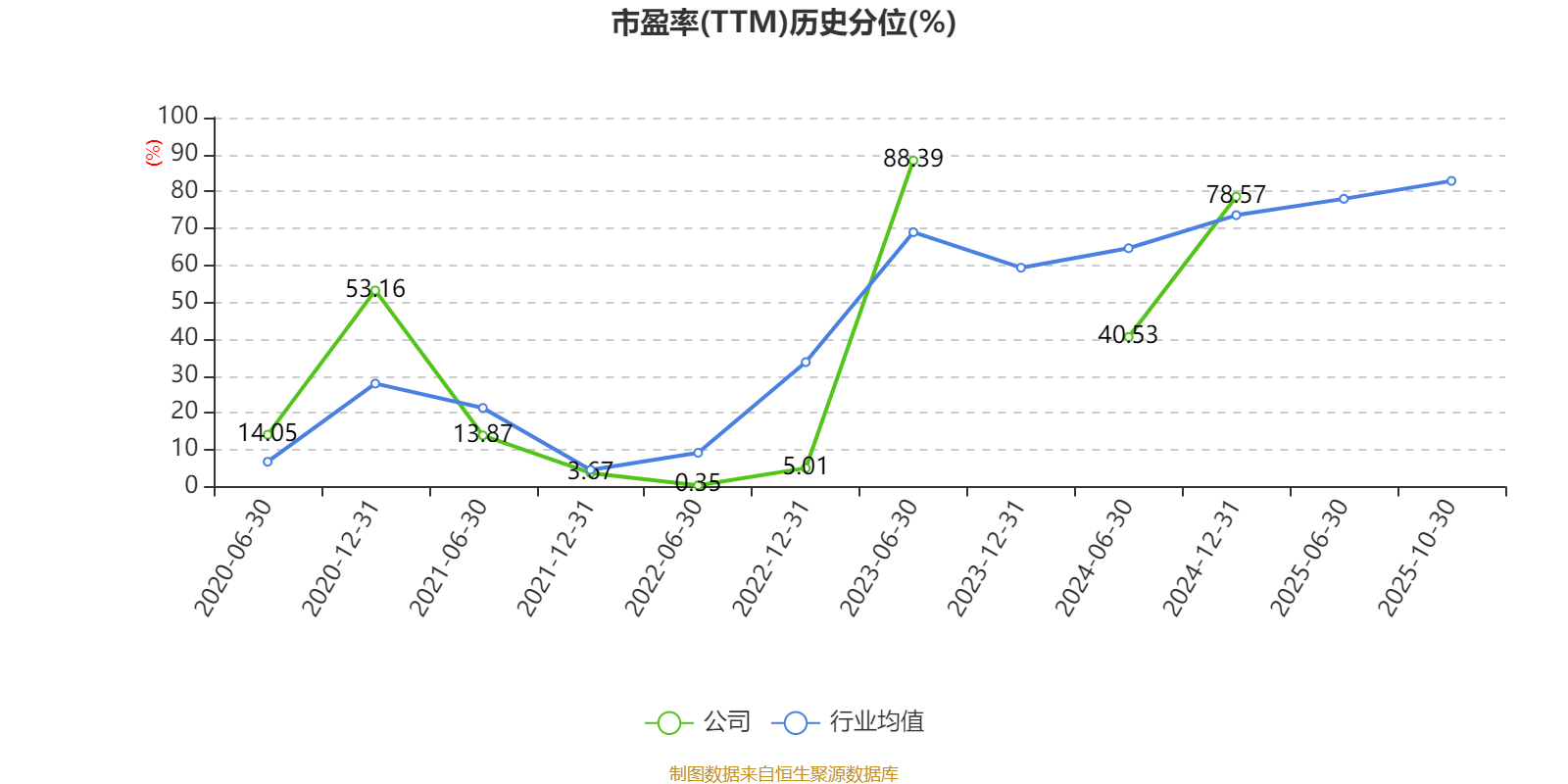 市盈率、市净率为负时,不显示当期分位数,会导致折线图中断。