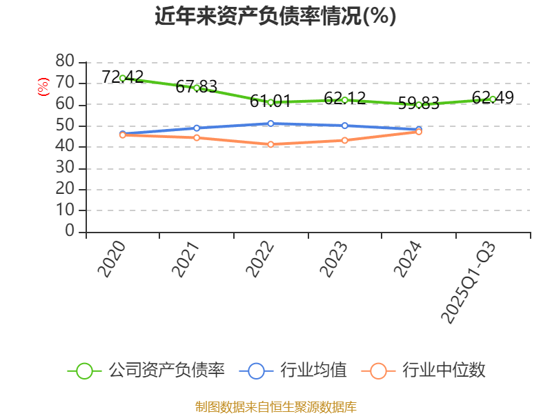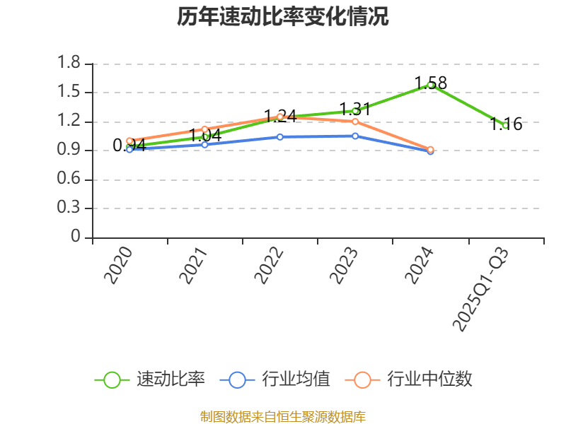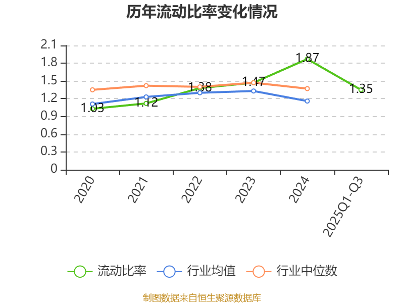 2025年前三季度,公司流动比率为1.35,速动比率为1.16。