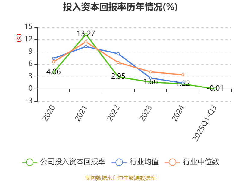 盈利能力方面, 2025年前三季度公司加权平均净资产收益率为-0.45%,同比下降0.79个百分点。公司2025年前三季度投入资本回报率为-0.01%,较上年同期下降0.77个百分点。