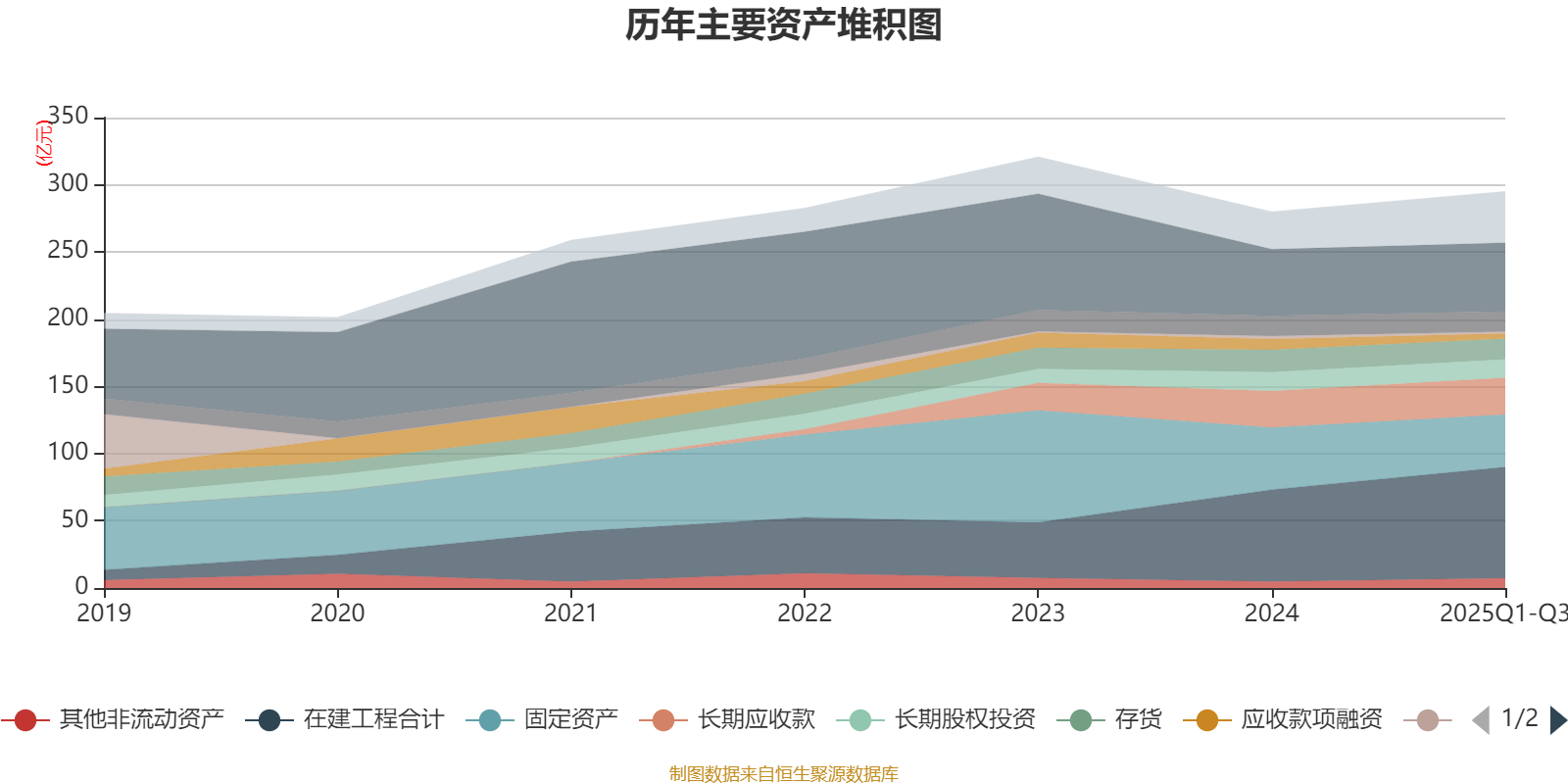资产重大变化方面,截至2025年三季度末,公司在建工程合计较上年末增加20.86%,占公司总资产比重上升3.59个百分点;固定资产较上年末减少15.74%,占公司总资产比重下降3.31个百分点;一年内到期的非流动资产较上年末增加225.46%,占公司总资产比重上升2.79个百分点;预付款项较上年末增加270.59%,占公司总资产比重上升1.57个百分点。