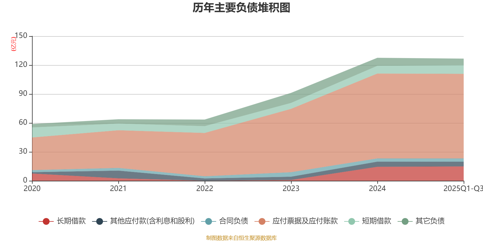 负债重大变化方面,截至2025年三季度末,公司应付票据及应付账款较上年末减少0.4%,占公司总资产比重下降1.48个百分点;预计负债较上年末减少97.64%,占公司总资产比重下降1.29个百分点;其他流动负债较上年末增加3128.69%,占公司总资产比重上升1.06个百分点;应付职工薪酬较上年末减少57.97%,占公司总资产比重下降0.52个百分点。