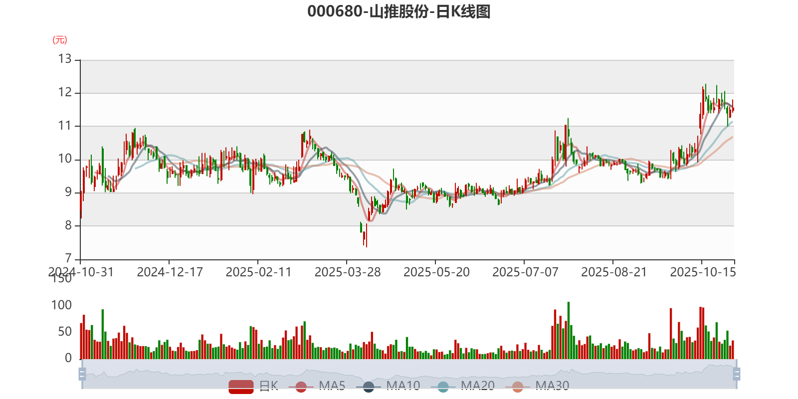 中证智能财讯山推股份(000680)10月31日披露2025年第三季度报告。前三季度公司实现营业总收入104.88亿元,同比增长2.36%;归母净利润8.38亿元,同比增长15.67%;扣非净利润8.23亿元,同比增长24.40%;经营活动产生的现金流量净额为3.94亿元,同比下降31.59%;报告期内,山推股份基本每股收益为0.5595元,加权平均净资产收益率为14.94%。
