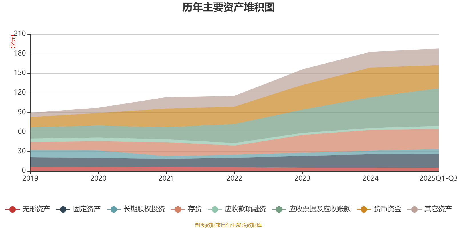 资产重大变化方面,截至2025年三季度末,公司货币资金较上年末减少21.98%,占公司总资产比重下降6.02个百分点;应收票据及应收账款较上年末增加22.64%,占公司总资产比重上升4.98个百分点;存货较上年末减少4.57%,占公司总资产比重下降1.25个百分点;长期股权投资较上年末增加45.18%,占公司总资产比重上升1.24个百分点。