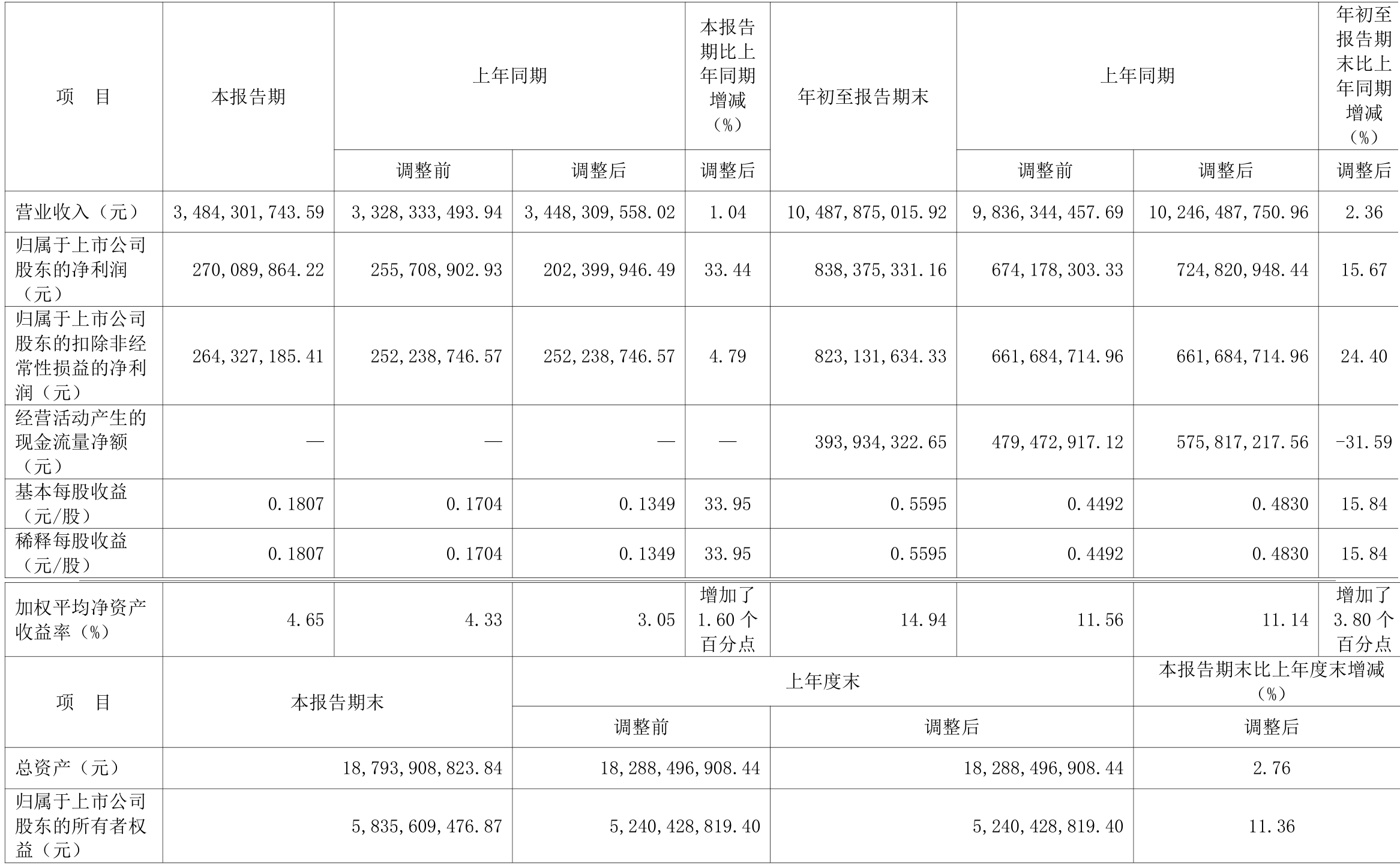 盈利能力方面, 2025年前三季度公司加权平均净资产收益率为14.94%,同比上升3.8个百分点。公司2025年前三季度投入资本回报率为10.35%,较上年同期上升1.23个百分点。